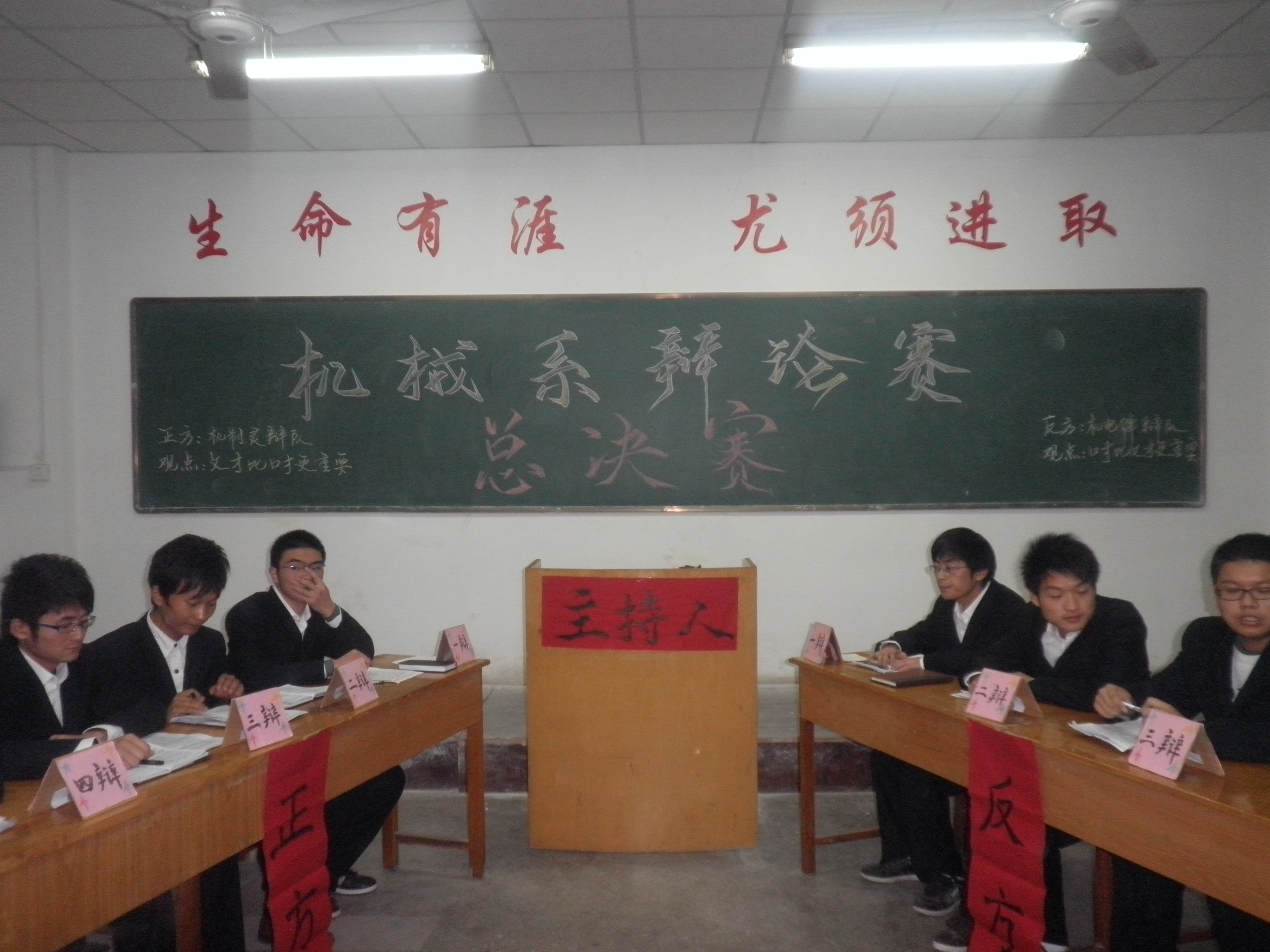为丰富同学们的课余文化生活,提高广大同学的学习积极性,拓宽同学们的视野,营造浓厚的学习氛围,机械系团总支学生会举办了第三届大专辩论赛,全系共有21支代表队参加。经过激烈角逐,机制1002班的“机制灵辩队”和机电1002班的“机电儒辨队”进入总决赛。