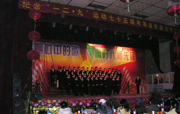12月9日晚,我系共派出四支代表队参加了院团委在大学生活动中心举办的纪念一二·九爱国运动七十五周年“唱响心中的歌 、争做时代新先锋”红歌会歌唱比赛。经过激烈角逐, “新机械军团队”的曲目《大中国》在刘祥老师的指导下喜获二等奖,“峥嵘回忆队”的曲目《众人划桨开动大帆船》在甄君老师的指导下也喜获二等奖,“中华魂队”的曲目《我的中国心》在刘华蕾老师的指导下获得三等奖,“红枫队”的曲目《祖国在召唤》在尹艳老师的指导下也获得三等奖,创造了我系在学院历届歌唱比赛中获得的最好成绩。