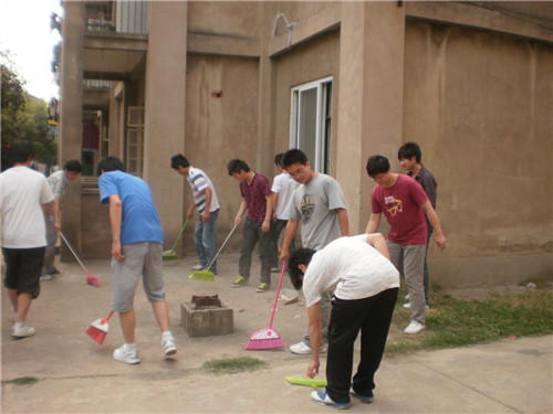 为进一步美化校园卫生,营造一个良好的学习、工作环境,5月16日下午3:30分,机械系党总支、团总支组织了本系部分优秀团员青年对学院前生活区的卫生进行清扫。