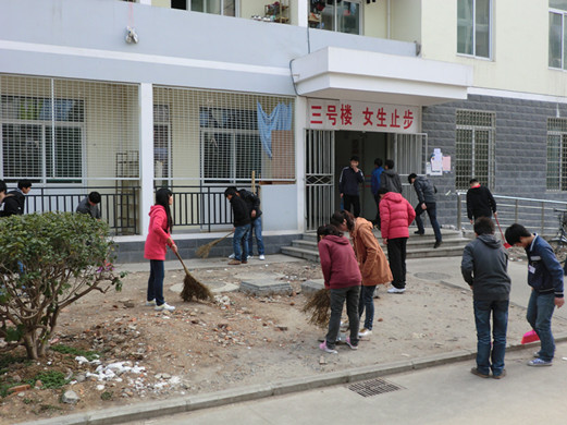 在活动中,同学们发扬了不怕苦、不怕累、不怕脏的精神,无私地为校园的清洁奉献着自己的力量,经过同学们辛勤的劳动,A教学楼与生活区卫生面貌焕然一新。