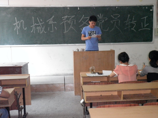 2012年7月4日上午,合肥通用职业技术学院机械系党支部在西配楼208教室召开了关于学生预备党员转正的支部大会,会议由机械系学生党支部书记张连娟老师主持,全体党员参加。
