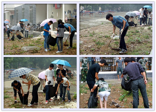 在打扫过程中,尽管下着蒙蒙细雨,但并没有熄灭大家的热情,大家干劲十足,场面热火朝天,发扬了不怕脏、不怕累的吃苦精神,彰显了当代大学生良好的素质。