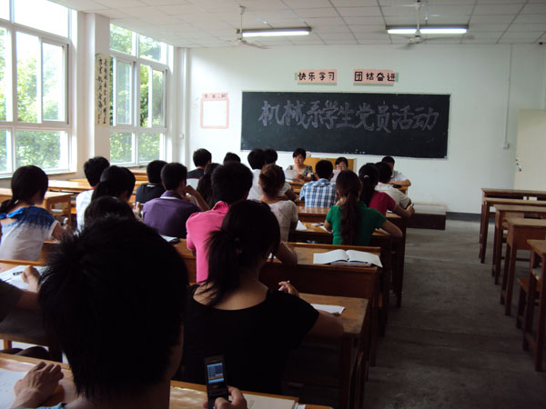 为贯彻落实中共中央办公厅转发的《中央组织部、中央宣传部关于在党的基层组织和党员中深入开展创优争先活动的意见》精神,机械系党总支于8月23日下午在A204教室组织学生党员开展了创先争优学习活动。机械系党总支书记薛晓妹老师、学生党支部书记甄君老师、团总支书记刘祥老师及26名学生党员参加了学习会。学习会由薛老师主持。